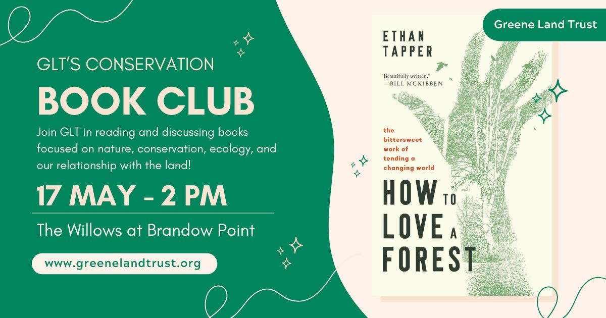 Join Greene Land Trust in reading How to Love a Forest: the Bittersweet Work of Tending a Changing World by Ethan Tapper. We will be meeting at the Willows on May 17th at 2pm for a discussion of the book and some light refreshments.